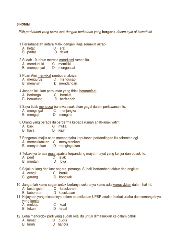 Latihan 1 Kata Nama Latihan 2 Kata Ganti Nama Latihan 3 Kata Kerja Transitif Latihan 4 Kata Kerja Tak Malay Language Exam Papers Grammar And Vocabulary